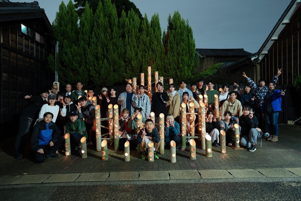 本番当日は、来場者がゆっくり灯りを眺めたり、写真を撮ったり、会話しながら竹あかりの間を歩く様子が多く見られ、自分たちがつくった空間で人が楽しんでくれていることを実感しました。