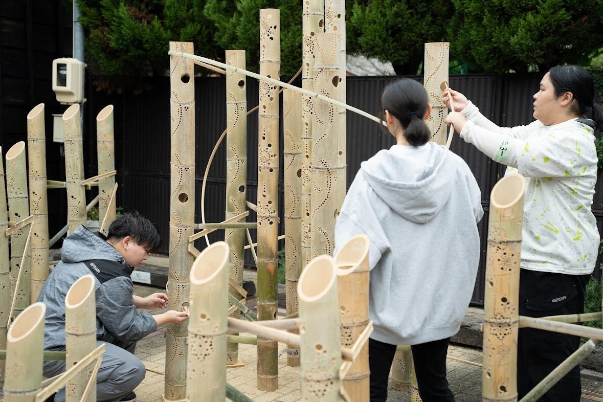 竹灯篭作りの体験会では、竹の循環について理解を深め、新メンバーに加工体験を行ってもらうことで活動への理解を促進した。