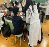 Eプロ5年生4名はQ&A方式の講義資料を事前に作成し、当日の体験実験の補助や休憩時間に適切な手洗いを体験してもらいました。