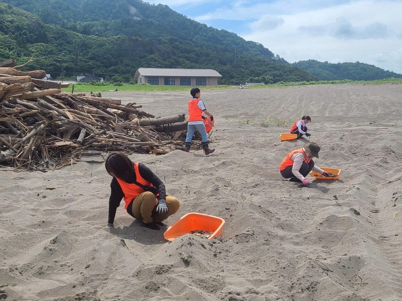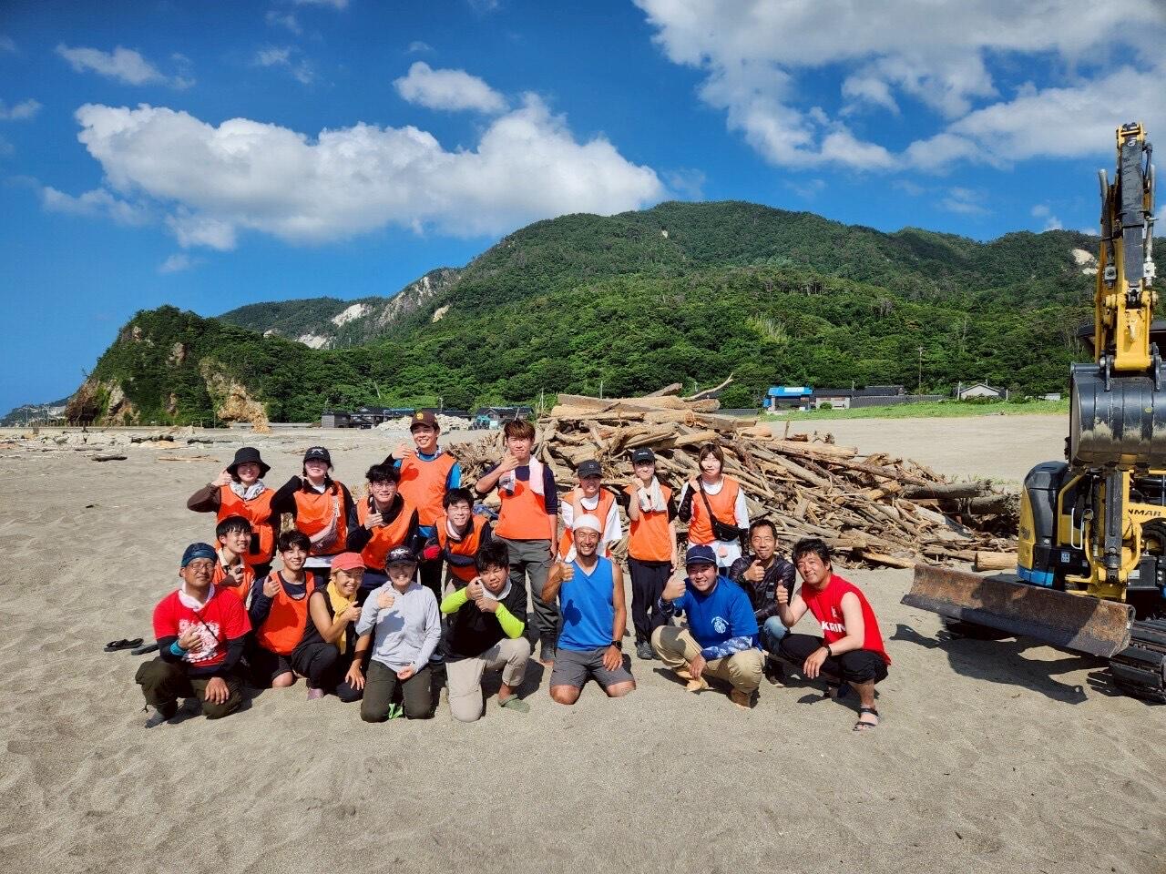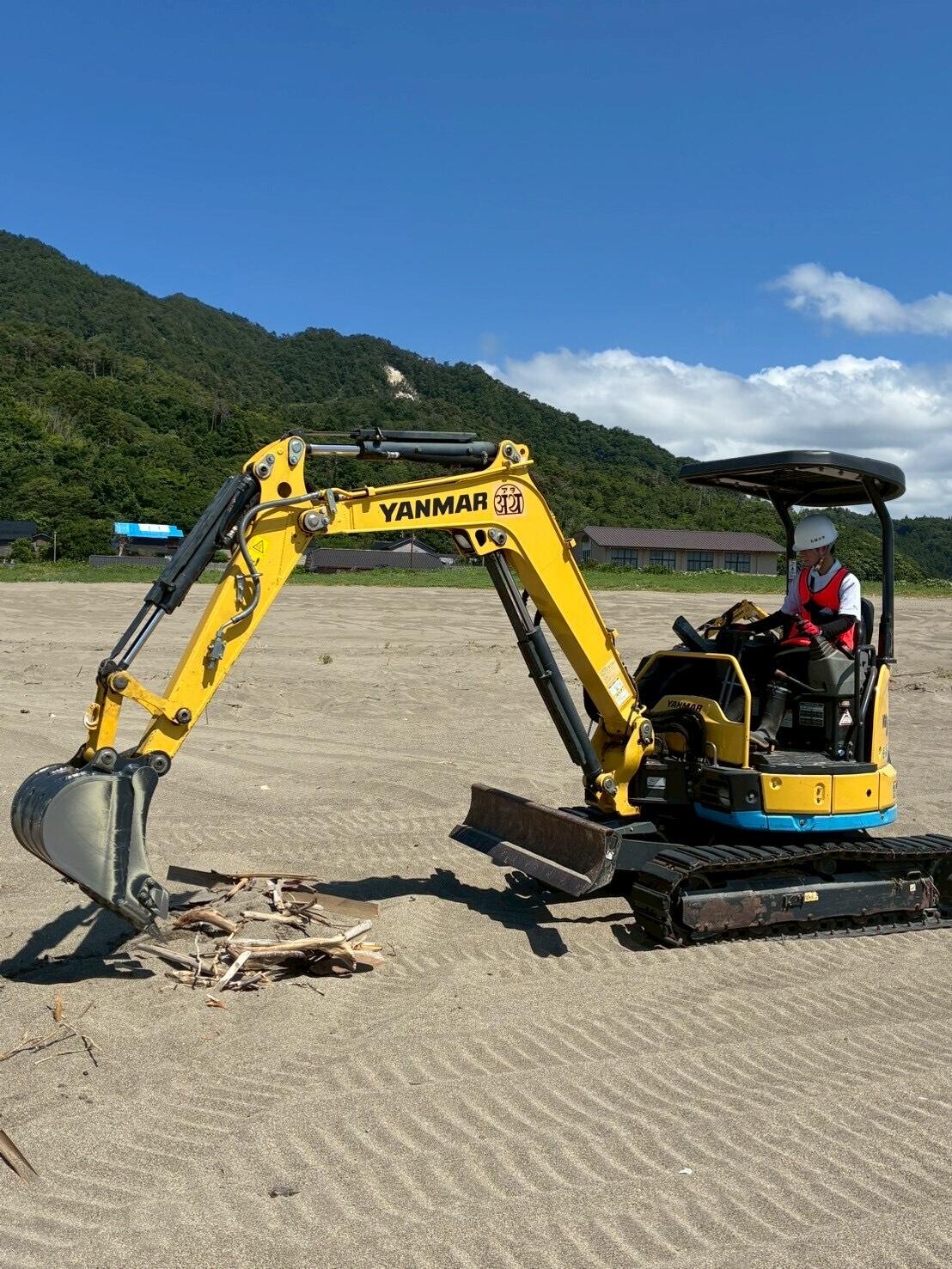7月12~13日の2日間にわたり、大川浜の浜清掃を行った。同時にユンボの操縦を行い、浜に点在する流木を集めた。