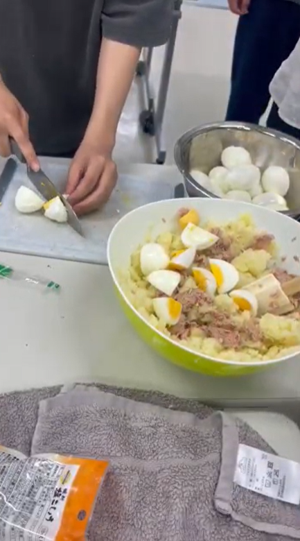 料理会では、学生メンバーが主体となり、収穫したジャガイモを使った複数のメニューを調理・試食した。