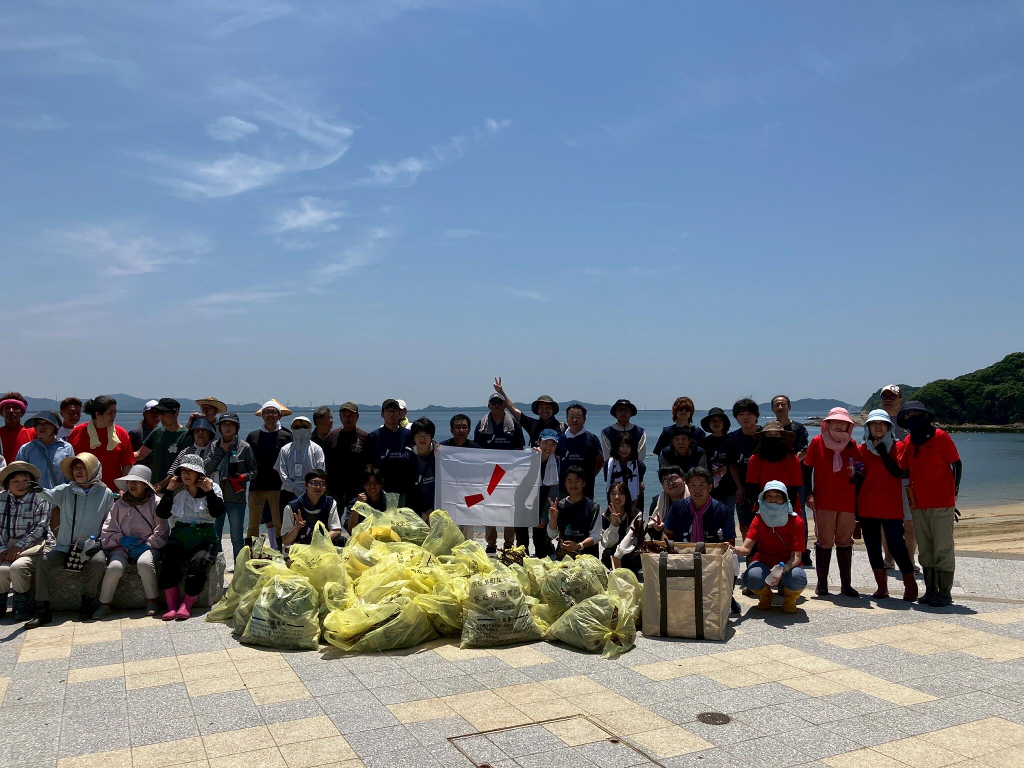 今回我々は篠島サンサンビーチに赴き、中部電力様や篠島漁業組合の皆様、そして島民のみなさまと清掃活動を行いました。その後中部電力の杉浦様より海洋問題についての勉強会と意見交換会を行いました。