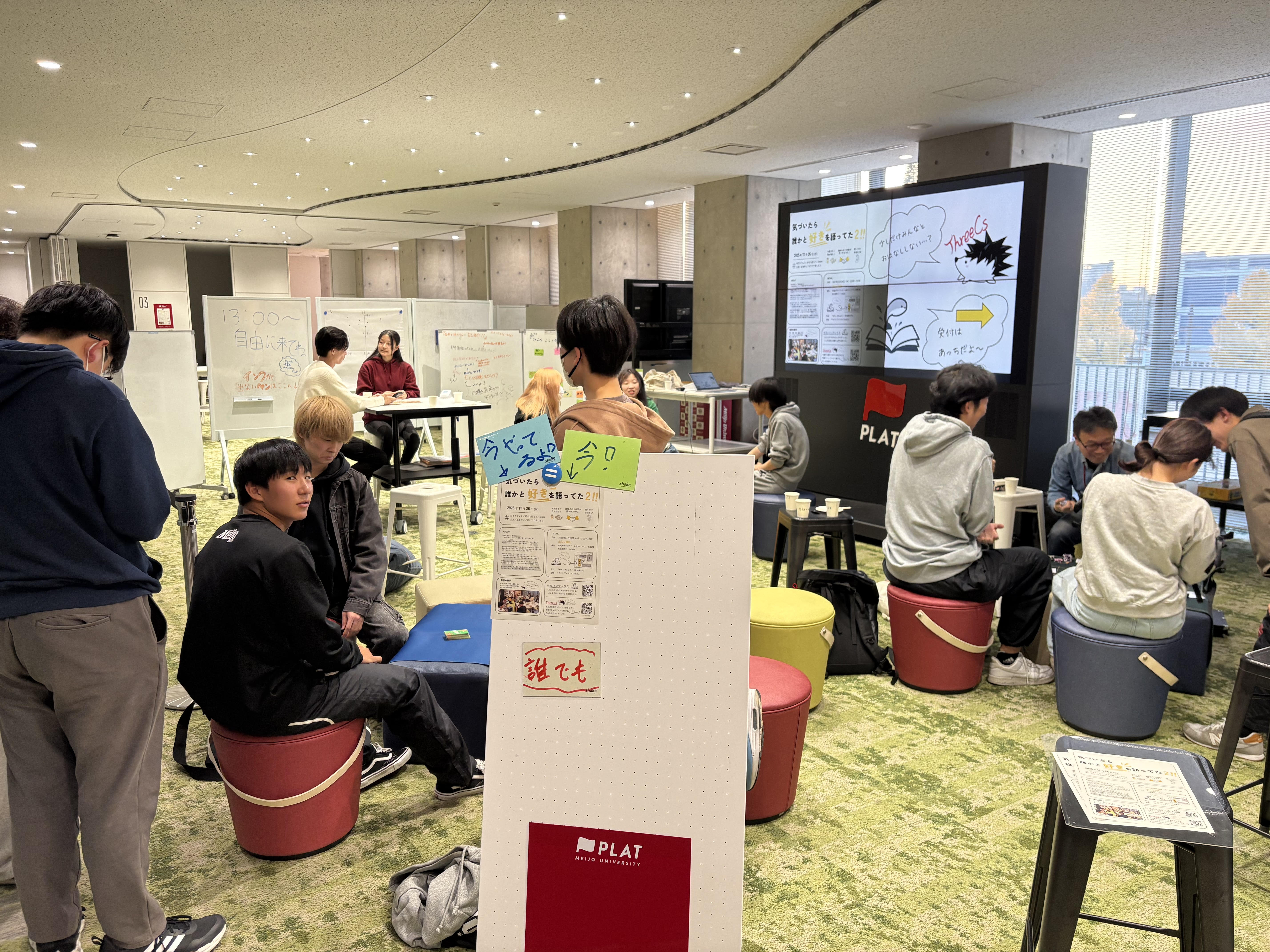 イベント当日は、社会連携ゾーン"shake"の強みである「自由な空間」を意識し、机・椅子の配置に工夫を凝らした。