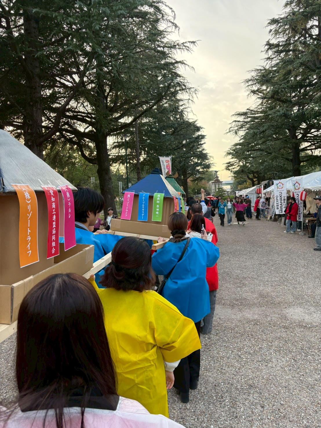 また、「ゆめ神輿」というダンボール製の神輿を担ぎながら練りまわる企画にも参加し、イベントを盛り上げると共に、他ブース出展者との仲を深めることもできました。
