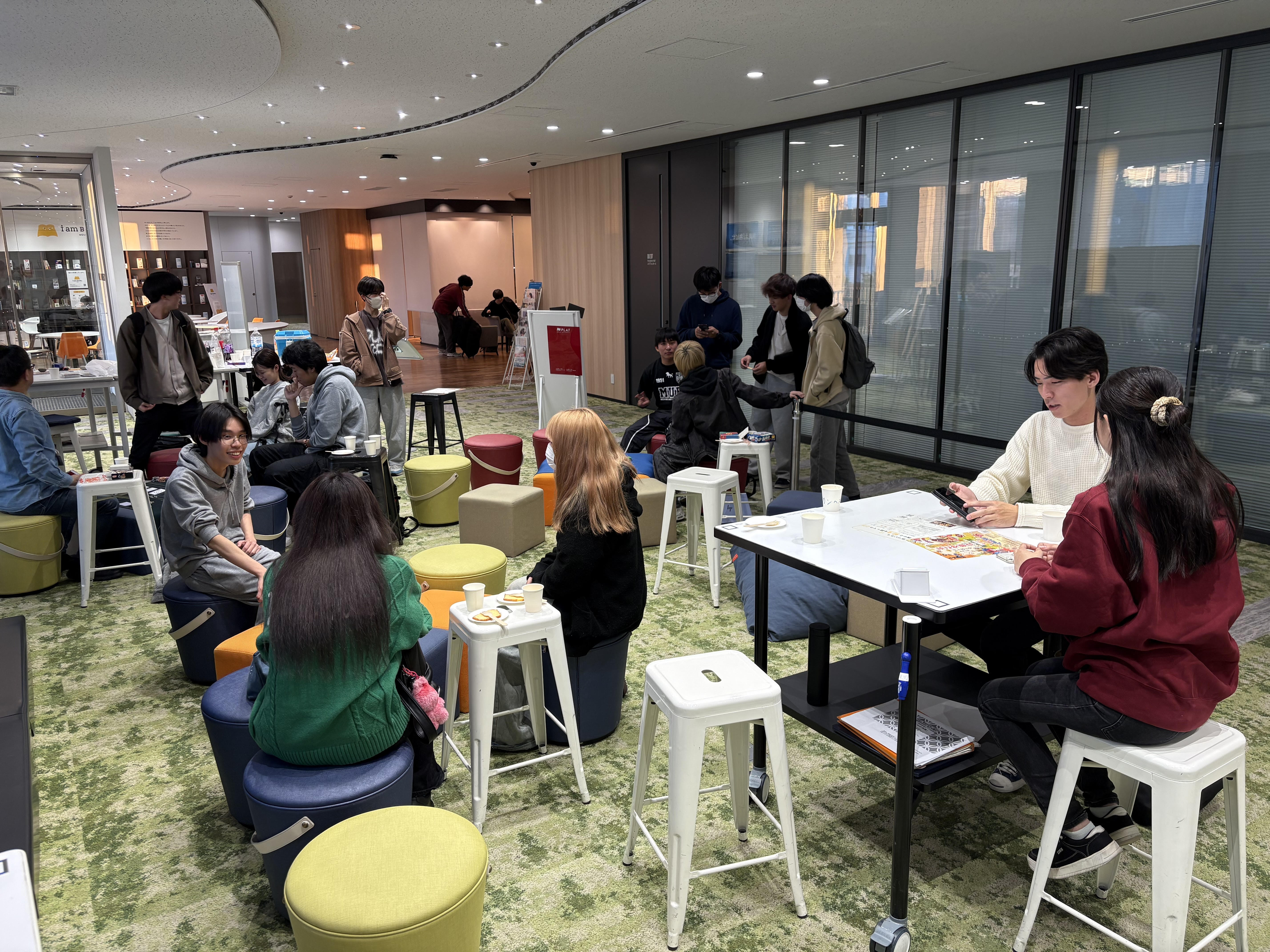 社会人参加者が持ち込んだ「ボードゲーム」が強力なアイスブレイクとして機能し、初対面の学生同士や社会人と学生の間にあった心理的な壁を取り払いました。