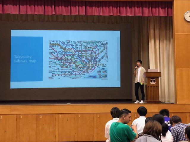 8月1日14:00~17:00 香港のShan Association Collageを32名の学生で訪問し、日本から用意した5本の英語プレゼンテーションを実施し、その後、約30名の香港の高校生と交流しました。当初は前日に本交流プログラムを準備していただいていたのですが、台風の接近により翌日の8月1日に変更してご対応いただきました。急な変更にも関わらず、多くの学生が集まり、手作りのプレゼントや色々なイベントを準備していただき、日本の学生たちと会い交流したいとの強い熱意を感じました。