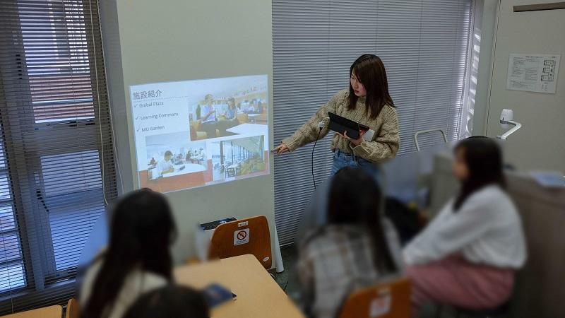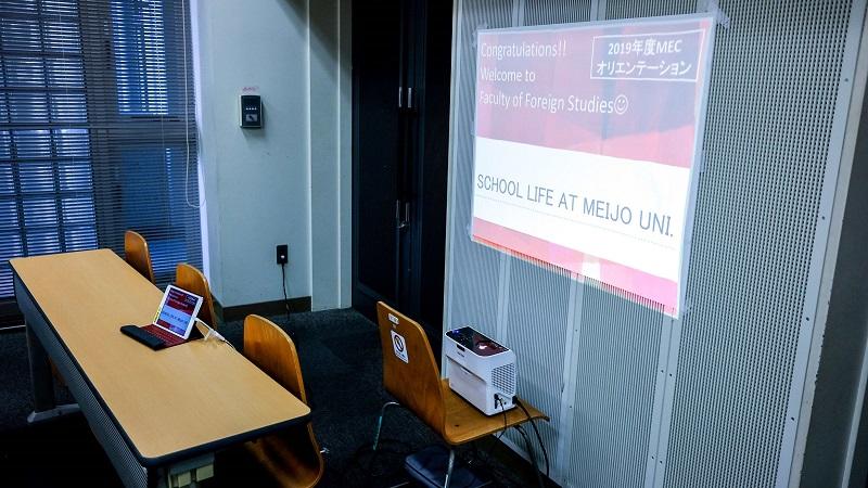 タブレットと短焦点プロジェクターを用いた学部紹介:MECオリエンテーションにて