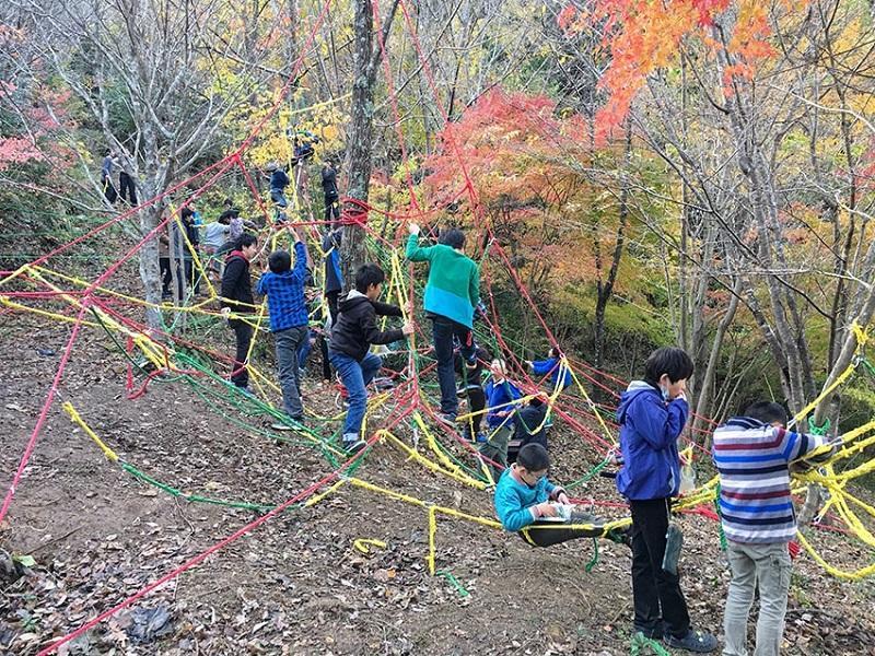 11/23の秋のもみじまつりに合わせ、地域のこども達に向けて、空間展示のお披露目を行いました。子どもの、発想や行動を引き出すことを目指したロープの作品です。