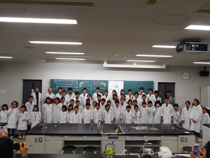 2018年7月29日(日)に学部4年生、大学院生23名が中心となって、「夏休みこども自由研究」を行い、39名の小学生が参加しました。実験のテーマは「鏡像花柱性をもつ花のひみつ:他受粉促進の仕組み」、「いろいろな葉っぱの大きさや形を比べてみよう」、「手作り花火で酸性雨について学ぼう!」、「ブルーベリーで土のpHをはかろう!」の4テーマでした。学生たちは講義や実験実習や卒業論文研究、修士論文研究で得た知識などを活かして、小学生たちに科学の面白さを伝えました。参加した小学生からは「お兄さん、お姉さんが分かりやすくおしえてくれたから、自由研究がまとめやすいです。」といった意見や、保護者の方からは「学生さんは積極的に話しかけて教えてほしかったです。皆さん遠慮がち」といった意見がありました。学生たちにとっては、生物環境科学科で学んだことを、どのように伝えていけばいいのかを考えるきかっけとなりました。また、自らの卒業研究や修士論文の研究内容を見直すきっかけにもなったことと思います。「夏休みこども自由研究」に参加した小学生たちが、将来、自分の夢を実現することに少しでも役に立てることができたならば、教えた学生たちも本望だと思います。