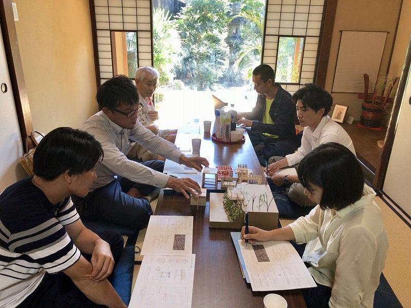 先日「かめともまちかどサロン」にて、地域に精通されている石川様や、建築家の市川大輔氏、「ろじうら」のイベントに関与されている日本福祉大学の池脇啓太先生にお集まりいただき、打ち合わせを行いました。その後、ワークショップ企画の参考となる空家の見学を行いました。