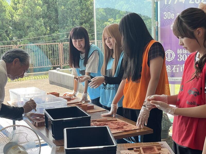 学生ははじめに釜石市・鉄の歴史館を訪問,森一欽館長の説明により釜石における近代製鉄の歴史を学ぶとともに,鋳造によるキーホルダーの製作体験にも参加しました。