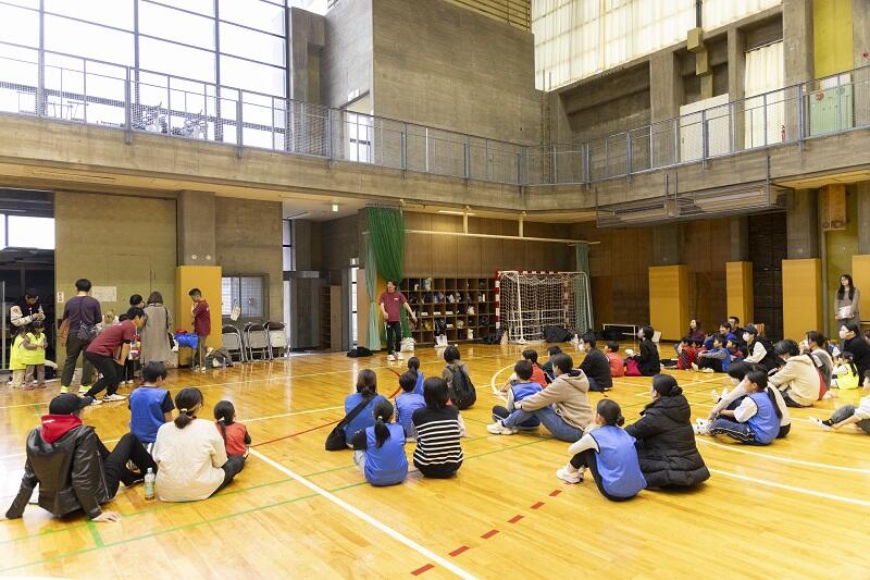 終わった時には、「汗かいた~!」、「楽しかった!」という子どもたちの声。学生たちは子どもたちの前に立って進める経験を経て、指示や声掛けの難しさ、楽しさ、奥深さを経験したようでした。今後も経験を積んで子どもの笑顔を引き出せるように成長できたらと思います。