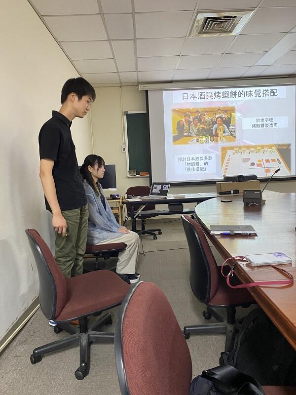 台湾食品工業発展研究所で学生が中国語・英語で発表。名城大学清酒の試飲会と市場調査を通じて国際交流も。