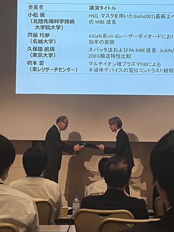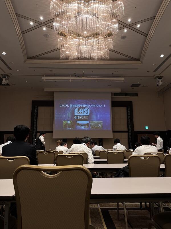 令和7年10月15日から17日にかけてグランドメルキュール奈良橿原にて開催された第44回電子材料シンポジウム(EMS-44)へ参加し、他大学の教員方や学生たち、企業の方と口頭発表およびポスター発表を通して意見交換を行い、知見を深めた。