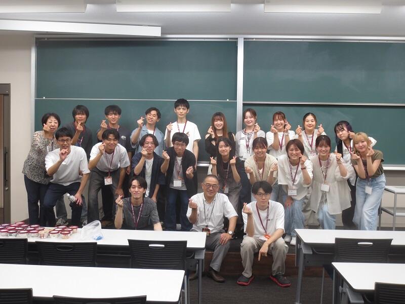 4月に開講した2年次プロフェッショナリズムI「地域ボランティア」の集大成として、9月20日に『名城大学認知症カフェ』を開催しました。なお、厚生労働省は2024年を「認知症月間」、そして9月21日を「認知症の日」と定めています。季節は彼岸に入り、前週までの猛暑も落ち着いた当日は過ごしやすい気候となり、天白区内のご近所を中心に57名の方がご参加くださいました。