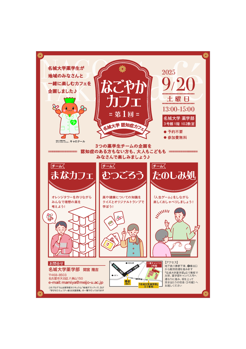 「名城大学認知症カフェ(なごやかカフェ)」チラシできました!