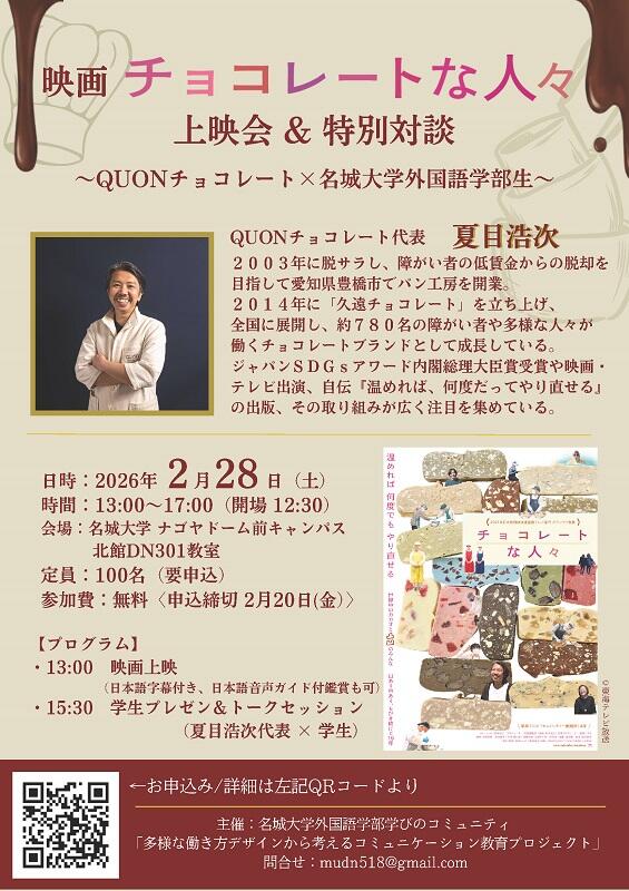 『チョコレートな人々』上映会&特別対談 ~QUONチョコレート×名城大学外国語学部生~開催