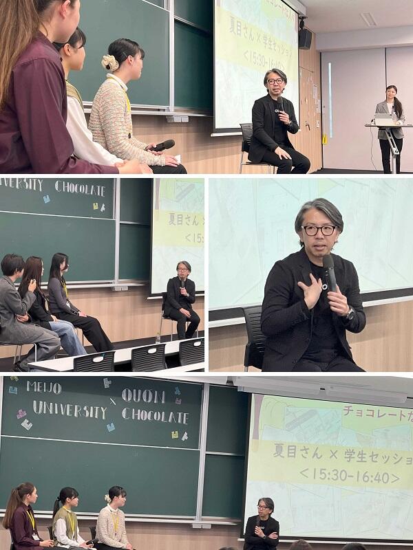 後半のセッションでは、QUONチョコレート代表の夏目浩次(なつめ・ひろつぐ)さんをお迎えし、特別対談を行いました。夏目さんをお招きしようというアイデアも、ゼミ生の熱く強い希望から実現したものです。