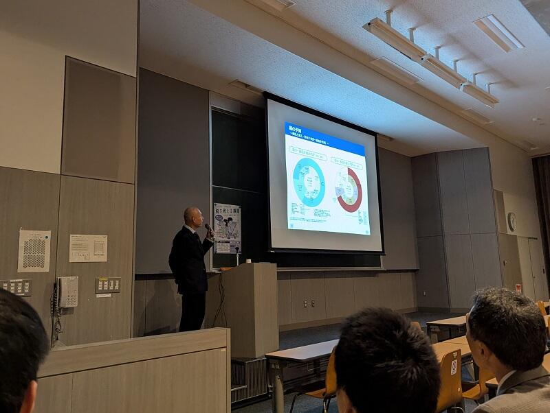 税理士で、法学部(会計学Ⅰ・Ⅱ)および法学研究科(消費税)で非常勤講師を務める加藤久也先生が、税理士試験と公認会計士試験の概要や試験に向けた心構え、試験対策法などを説明されました。加藤先生は、長年にわたって大手予備校で税理士試験の講師を務めた経験があり、試験に向けた学習スケジュールを含めた具体的な説明をしていただきました。