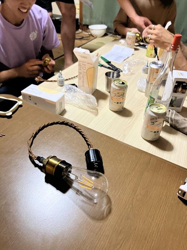 もう1つは新潟県十日町市蓬平集落。今回は2つの部屋の改修作業を行いました。特に面白かったのは、部品から照明をつくる作業。ペンチ片手に照明を作成する作業をしました。出来上がった空間も良い感じです!