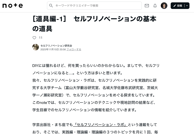 学芸出版社ウェブメディアにて連載「セルフリノベーション・ラボ」を掲載