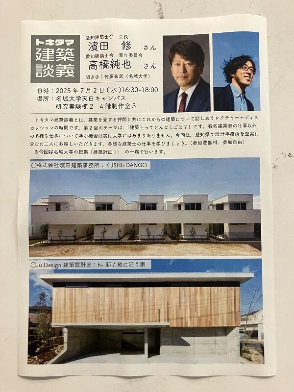 青年部の高橋さんは名城大学建築学科の卒業生でもあります。遠い先輩の活躍からも良い刺激をもらえたのではないでしょうか。