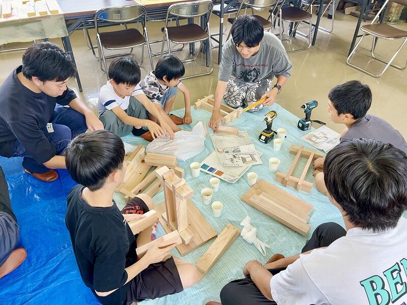参加した子どもたちは、椅子の組み立てや布の絞りといった作業に時間を忘れて没頭し、楽しみながら制作に取り組んでいる様子が強く印象的でした。特に、自分たちの手で作り上げたものが徐々に形になっていく過程で、大きな達成感や満足感を感じているようでした。