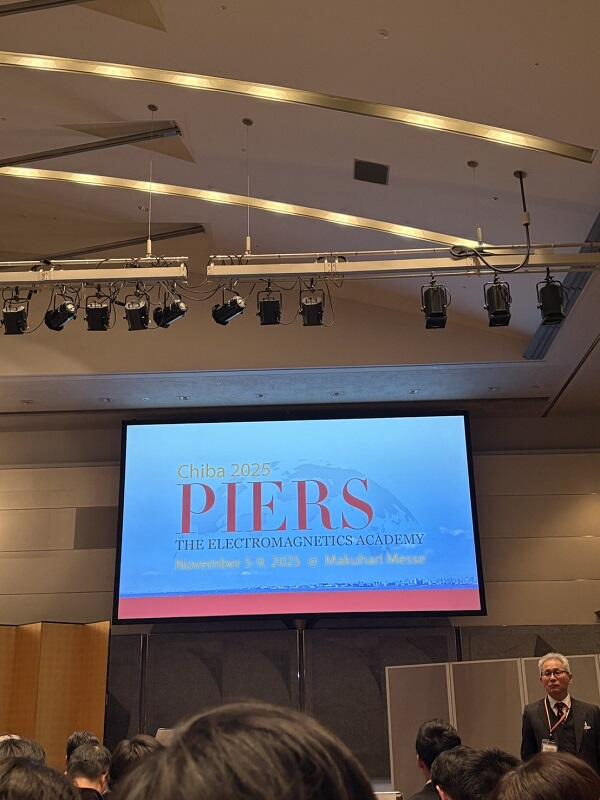 11月5日から7日にかけて、千葉県・幕張メッセで開催された**PIERS 2025(Photonics and Electromagnetics Research Symposium)**に参加し、研究発表を行った。本会議は世界各国から約1300名が参加する大規模な国際会議であり、開会式には天皇陛下がご臨席されるなど、非常に格式の高い会議であった。