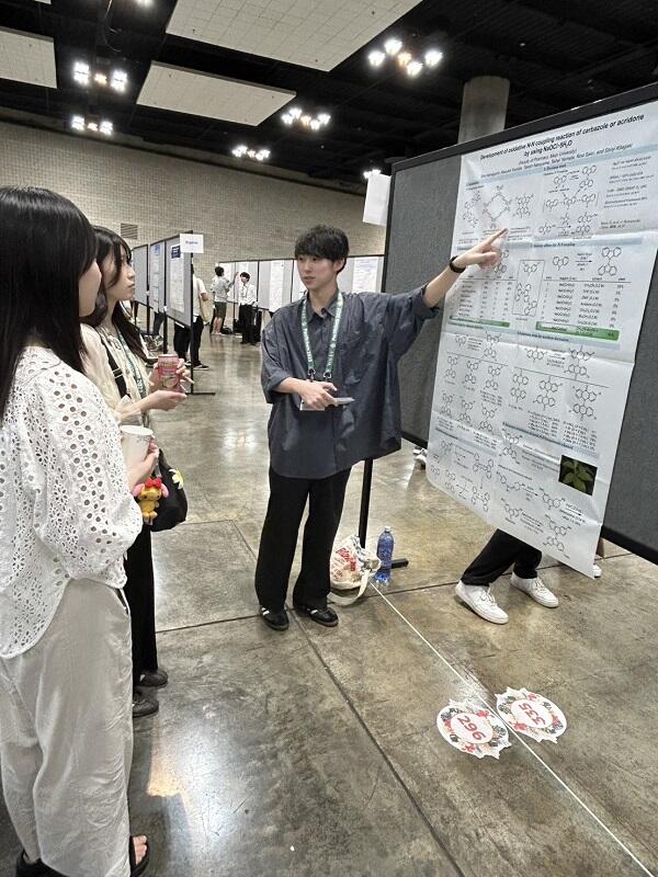 太平洋地域の7カ国(アメリカ、ニュージーランド、オーストラリア、カナダ、韓国、中国、日本)の化学会が、5年に一度共同で開催する環太平洋国際化学会議(Pacifichem 2025)が、12月15日から20日まで6日間にわたり米国ホノルルで開催された。本学習プログラムを活用してこれまで、国内の学会に参加、発表経験を踏まえて、学部生3名が国際学会で英語での発表に挑戦した。この学会では、海外の研究者だけでなく、日本国内の研究者も多く参加することから、英語での発表機会としては、ハードルが低いと感じられたので、学部生にも積極的に参加を促したところ、前回の報告で挙げたように3名が立候補した。