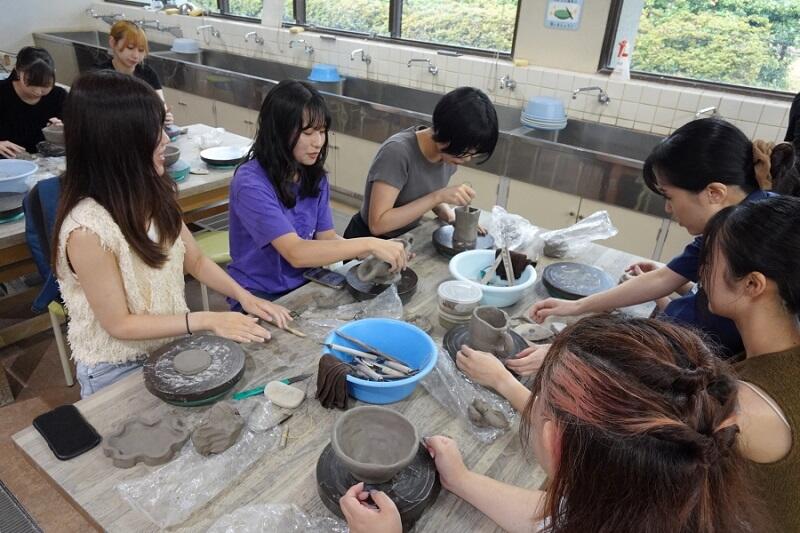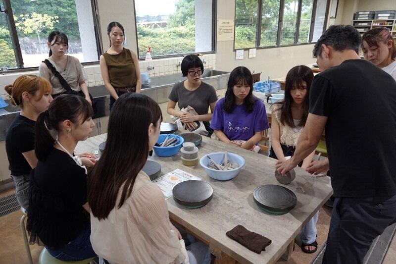 その後、ラウンジに移動して、瀬戸市の小学校の先生から、瀬戸の子どもの陶芸の取り組みについてお話をうかがいました。瀬戸市の小学生は秋の陶芸展に向けて6月に作品づくりを行い、クラスで1~2作品が選ばれて焼かれ、市展覧会に出品されるということでした。児童の親たちも経験してきていることで、瀬戸市の人々にとって陶芸が大変身近なものであることがうかがえました。