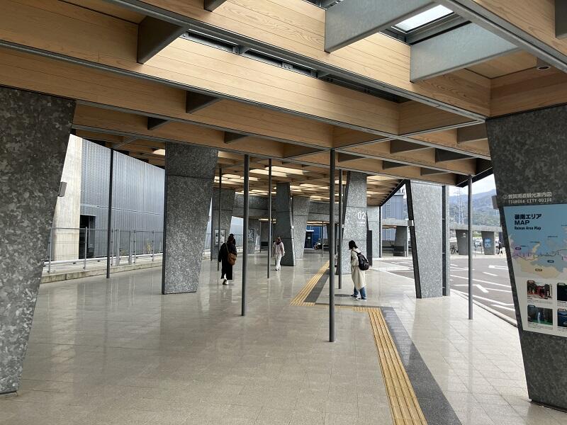 まずは千葉学さんの作品を見学しに福井県の敦賀駅に行きました。市民らとの対話を重ねて作られている駅前広場と交流施設の見学を行いました。
