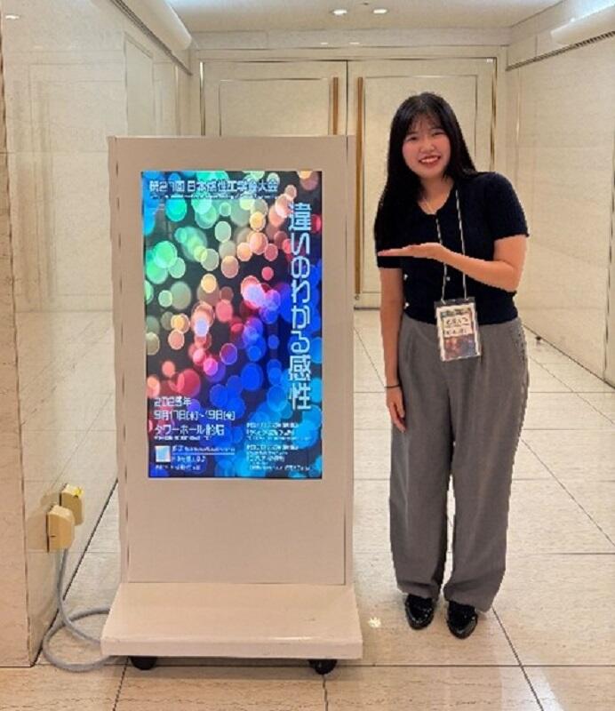 2025年9月17日(水)から19日(金)にタワーホール船堀で開催された第27回日本感性工学会大会の「感性に係る計測・評価技術」セッション(口頭発表会場)にて、野本凜乃さん(理工学研究科情報工学専攻M1)が研究発表しました。発表題目は「ダマスカス模様の包丁表面に対する視覚的印象と光学特性の関係」で、共著者は本学メンバーのほか、共同研究先のアイチ テクノメタル フカウミ株式会社、および、実験協力先のラジャマンガラ工科大学タニヤブリ校の方々です。