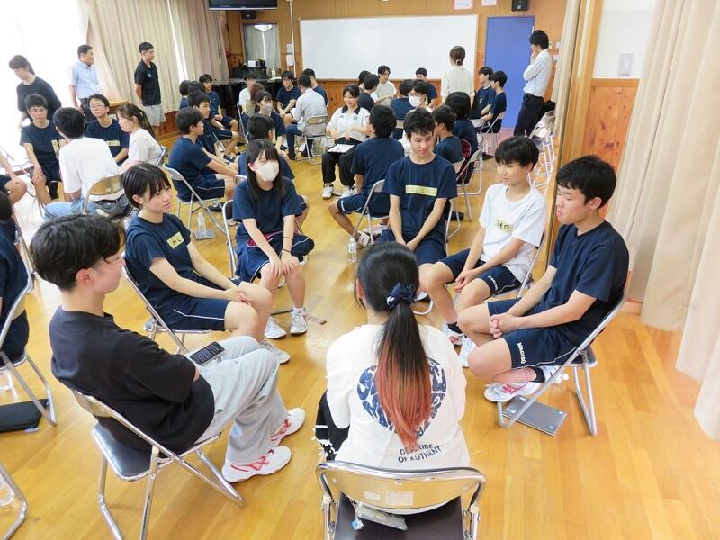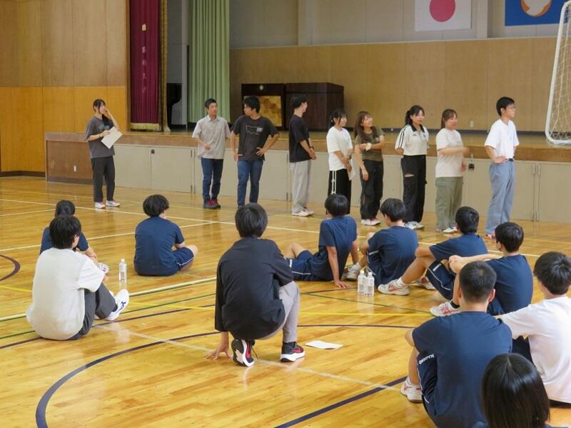 昨年は上の趣旨で南木曽中学校を訪問し、お互いの自己紹介やレクリエーションを行った後、自主的な学びについて学生から生徒にアドバイスしました。その結果、学習支援にも良い効果が現れ、南木曽中学校から今年度も同様の企画を依頼されました。そこで今年度は9月11日~12日にかけて南木曽町を訪問し、南木曽中学校生徒との親睦を深めました。