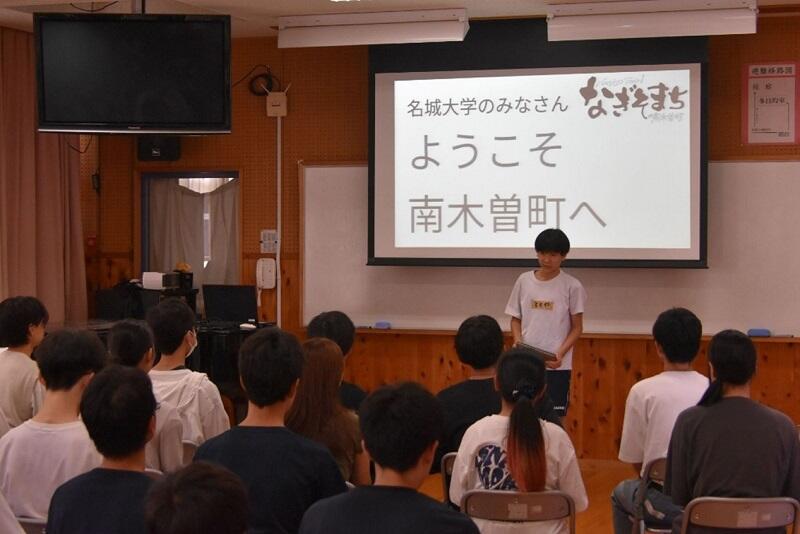 教職課程には、名城大学・南木曽町の連携協定に基づき南木曽中学校の生徒たちに学習支援をしている学生たちがいます。これは社会連携センターが窓口となり、Zoomを用いて毎年複数回実施してきた活動ですが、Zoomのみでの関りだと円滑なコミュニケーションをとれるようになるまでに時間がかかるという問題がありました。そこで昨年、Zoomでの学習支援開始の前に一度南木曽中学校を訪問して、学生と生徒との距離を縮めておこうということになりました。