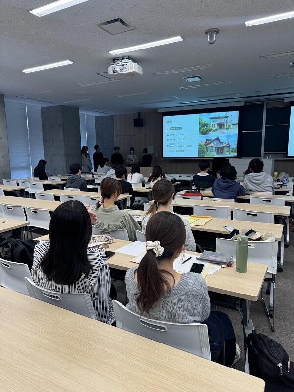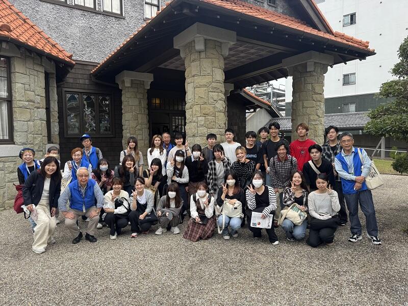 参加した学生からの振り返りでは、「東区の歴史を初めて知りました。」「撞木館など和風と洋風が混ざった家にすごく魅力を感じました。」など、フィールドワークをすることによって、はじめて自分の目で見て経験することの大切さを学んだようでした。