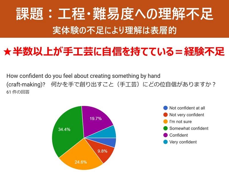 事前調査では、留学生が抱く「職人技」のイメージを把握することを目的とした。多くの回答で、繊細さや熟練性といったポジティブな評価が見られた一方で、その背景にある工程や技能習得の難しさに対する理解は十分とは言えなかった。これらの結果から、実地体験を通じた理解促進の必要性が示唆された。