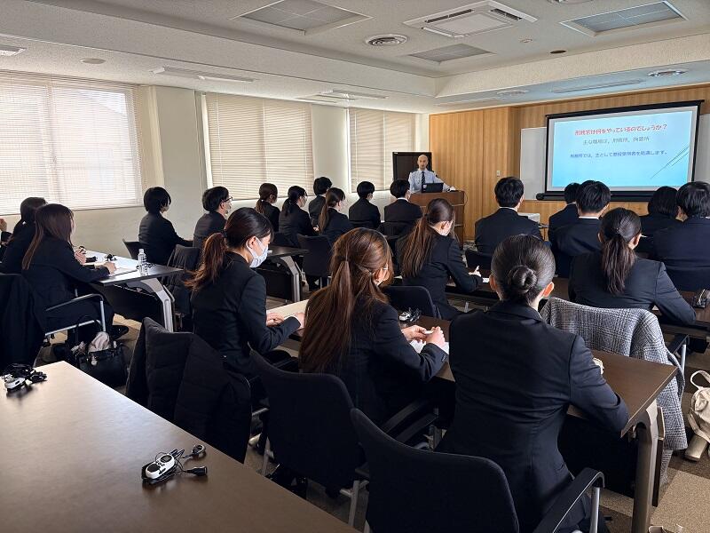 最後に、会議室に戻って質疑応答の時間を設けていただきました。参加学生からは、実際に被収容区域を見学した時に気になった点(掲示物の表記の意味や施設内に置かれていた物はどのような時に使うのか、など)だけでなく、南海トラフ地震などを想定して「自然災害にどのように備えているか」といった質問なども寄せられました。また、中野様が拘置所での勤務経験についても可能な範囲で話してくださったことから、死刑執行の現実に関する質問も多くありました。予定の時間を過ぎるまで質問が続き、参加学生の興味関心の高さがうかがえました。