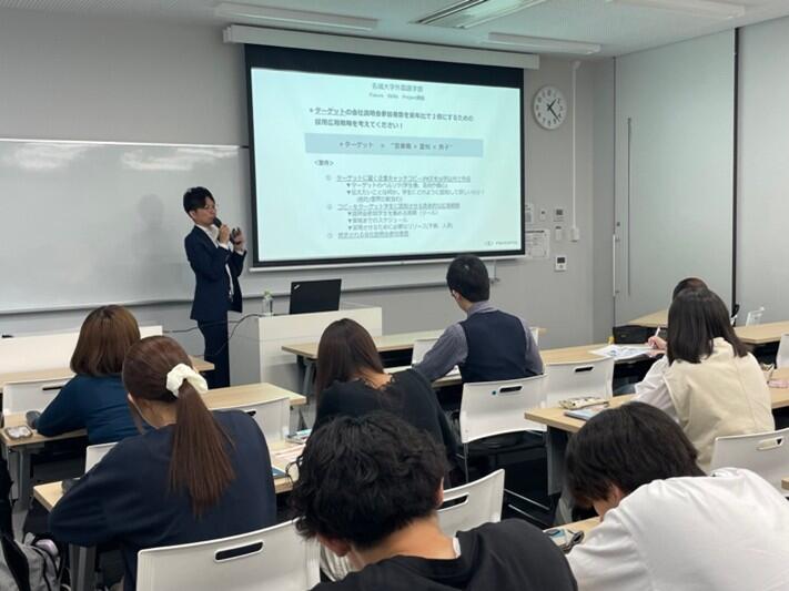 FSP(Future Skills Project)は、多様な業種・業態の企業10社と連携し、企業連携型教育プログラムを実施するプロジェクトです。この取り組みでは、企業から提供された課題に取り組むことで、学生が失敗や成功を経験しながら、「チャレンジ精神」や「主体的に行動する力」を養うことを目的としています。また、本プログラムを通じて、学生が自身の4年間の学びの目的を明確にし、より主体的に学修に取り組むことが期待されています。