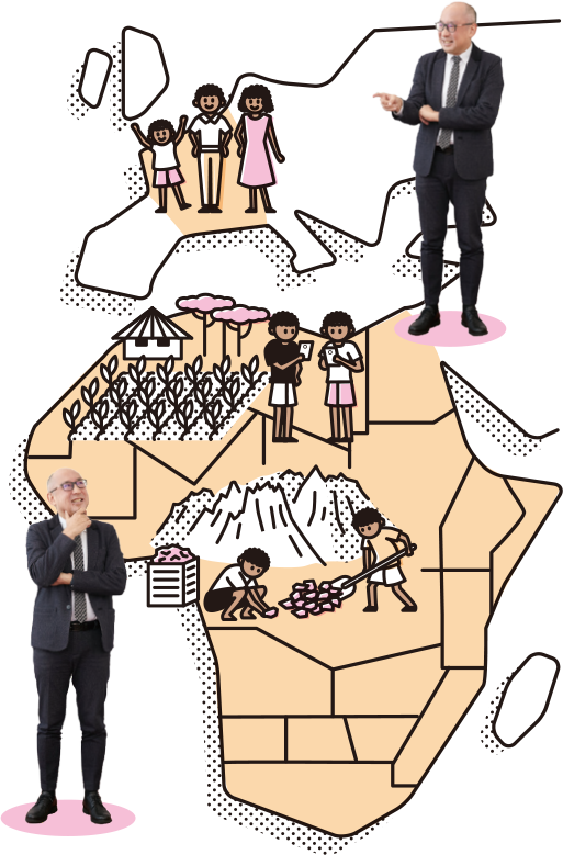 「アフリカ」といえば、ゾウやキリンが群れる野性の王国をイメージする人もいるでしょう。しかし、現在のアフリカは、携帯電話に不可欠なレアメタルをはじめとする豊富な天然資源で世界の経済・産業を支えています。アフリカの都市部では、建ち並ぶ高層ビルの間をスマホ片手の人々が行き来しています。その一方で、レアメタル採掘場では児童労働が今も続いています。