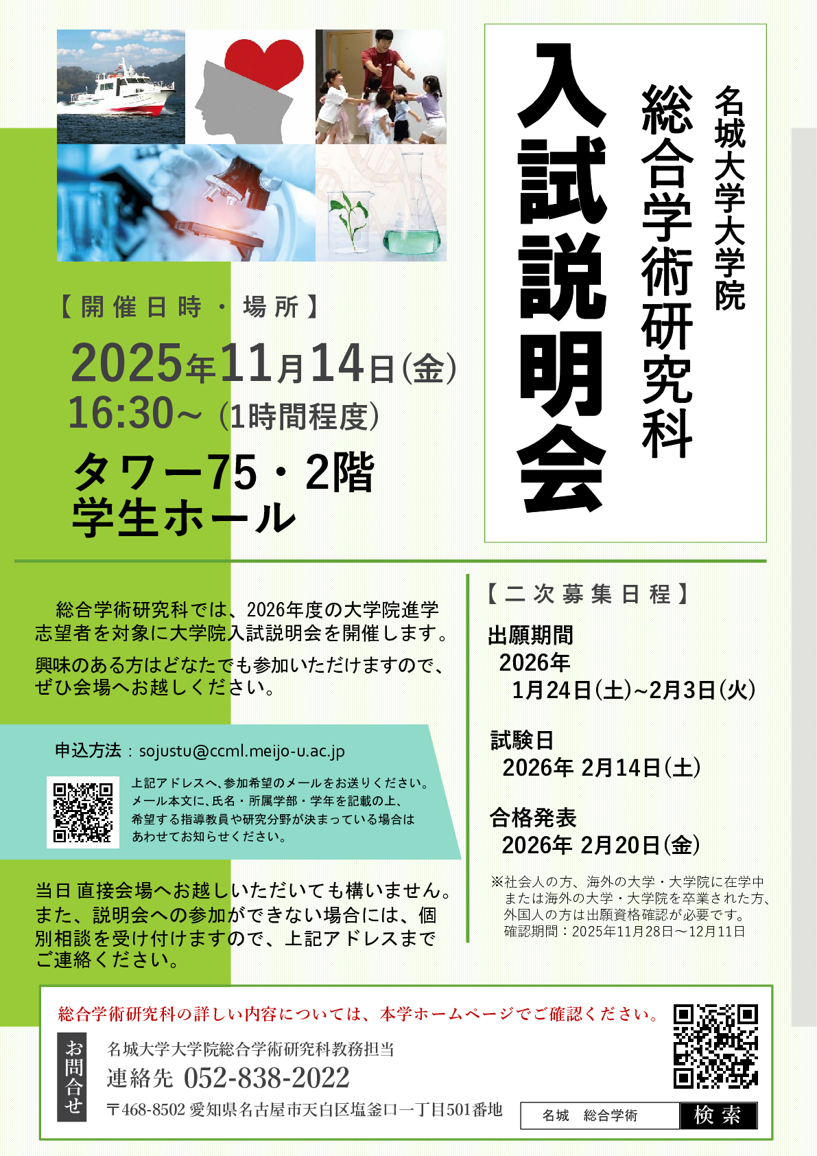 大学院総合学術研究科では、入試説明会を開始いたします。