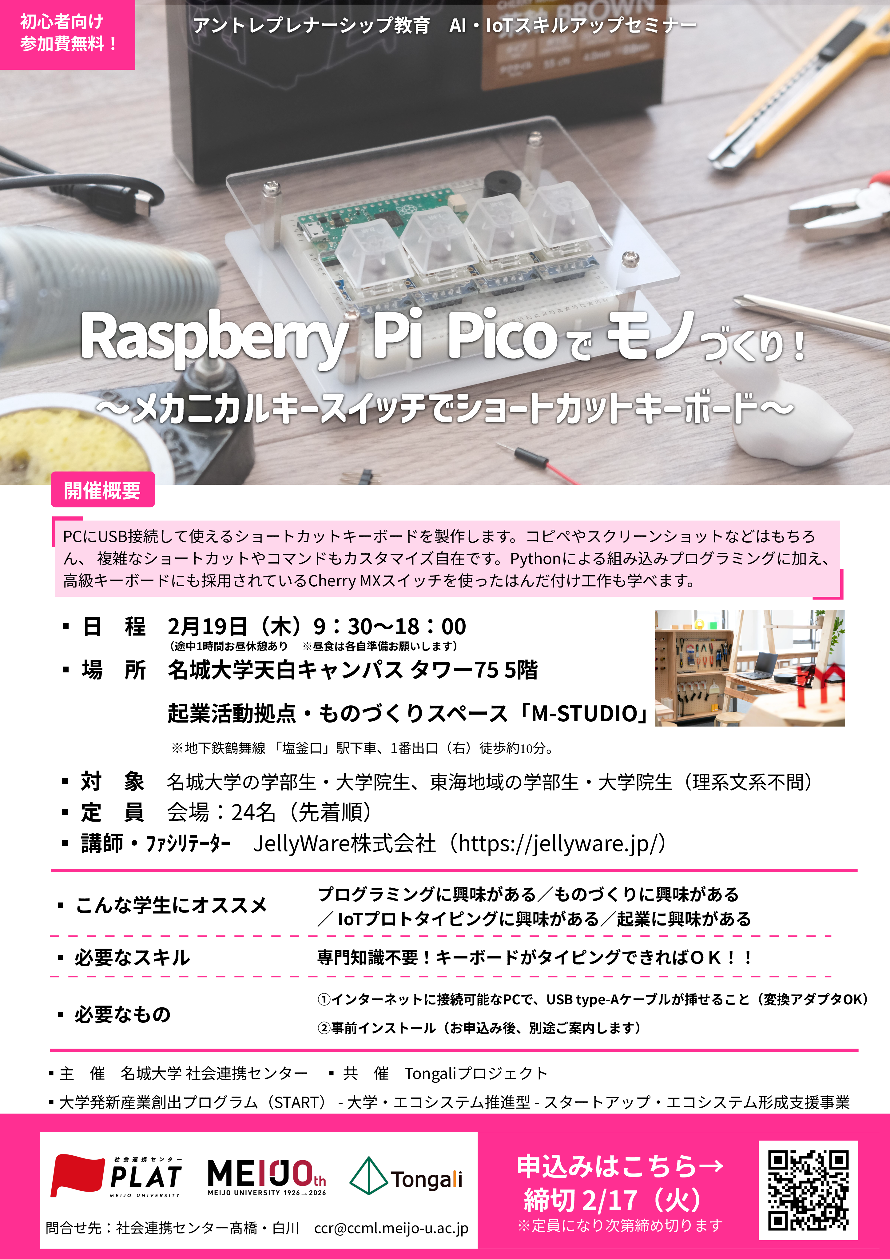 イベント 【参加者募集】AI・IoT人材育成プログラム(3)『Raspberry Pi Picoでモノづくり!〜メカニカルキースイッチでショートカットキーボード〜』