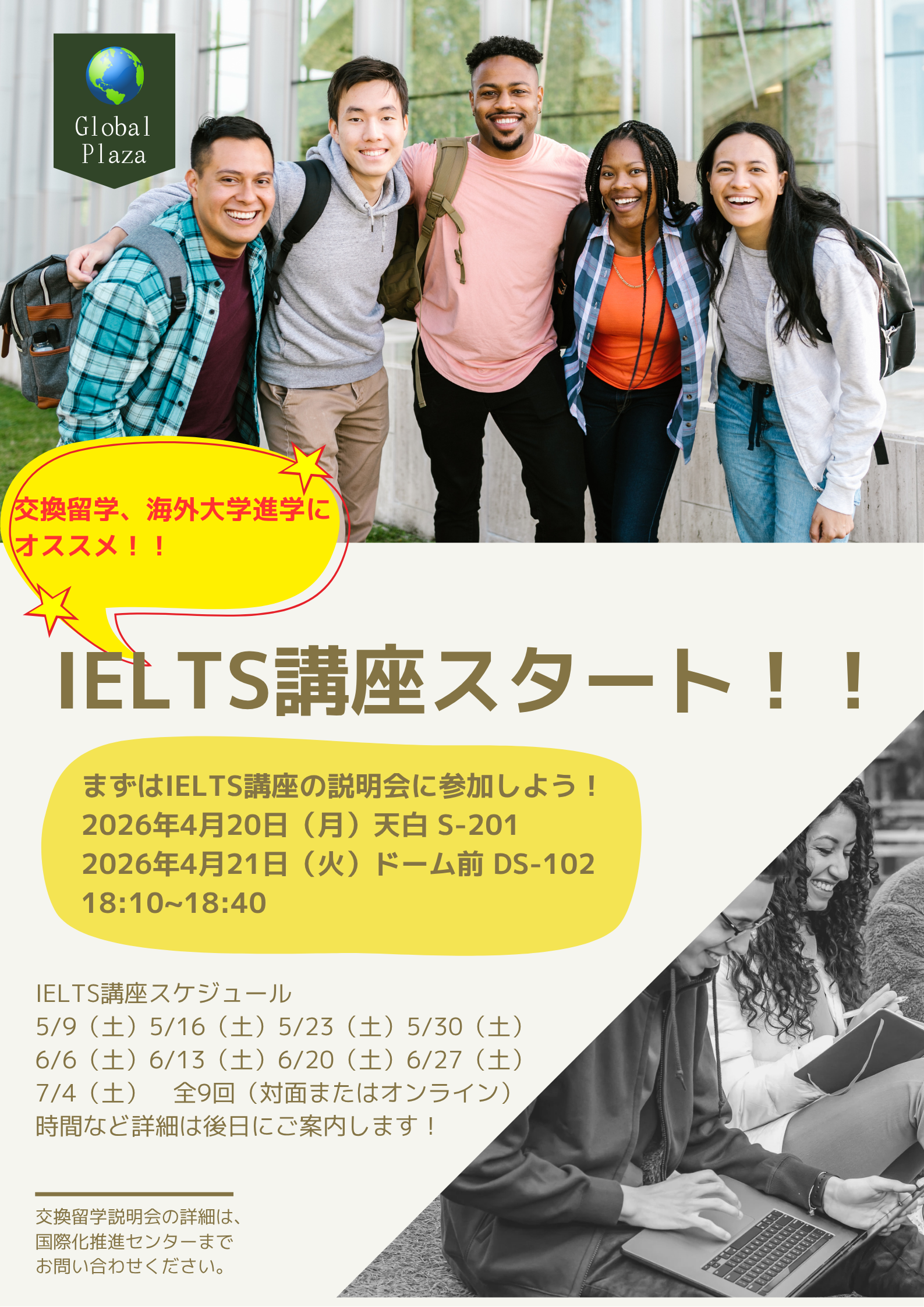 留学相談全般、交換留学、海外英語研修、グローバルプラザ、さくっとONLINE英会話、LIVE留学、外国人留学生の交流、スチューデントアシスタント制度など