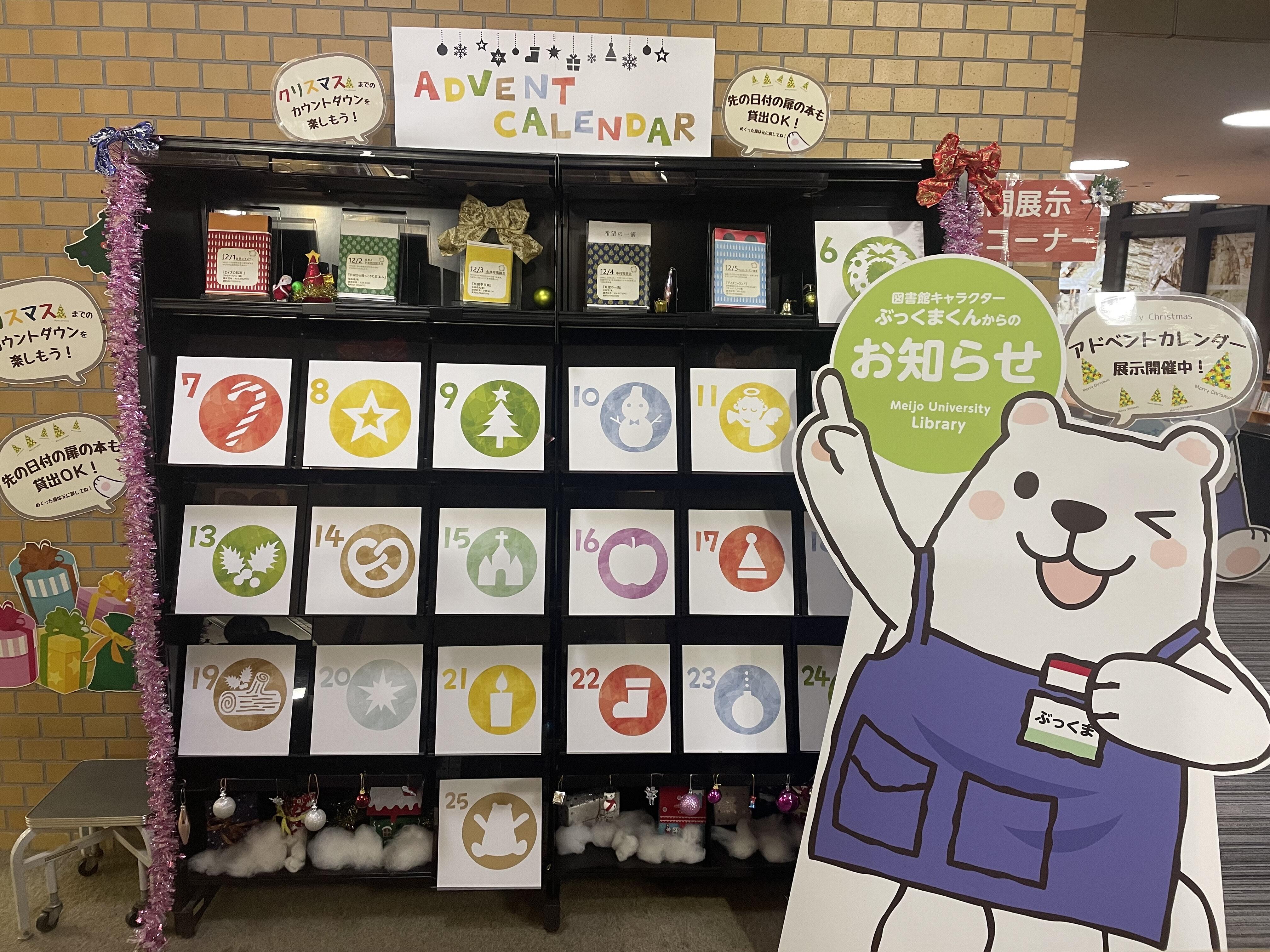 天白本館2F奥の期間展示コーナーにて、アドベントカレンダー展示を開催中です。
