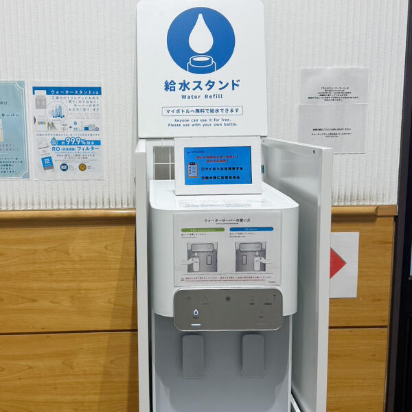誰でも無料で利用できるウォーターサーバーを公共施設に設置しています。サーバーに搭載された液晶モニターに広告を流し、その収益を運営費に充てることで、利用者負担ゼロを実現しました。この取り組みは、いつでも手軽に給水できる利便性はもちろん、マイボトル利用を促進することでペットボトルの消費を減らし、SDGs目線でも社会に貢献します。