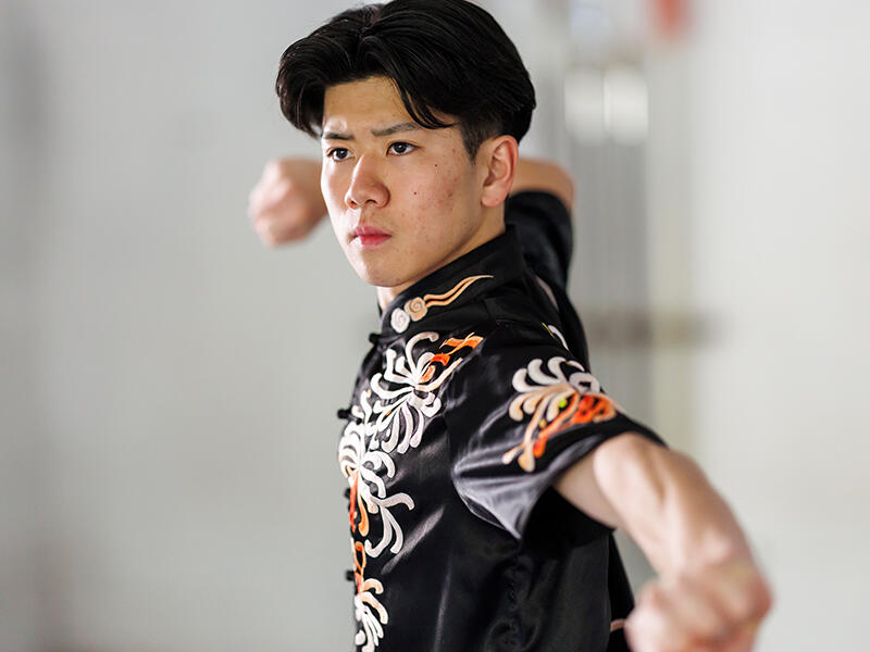 小学生から始めた武術太極拳。これまでにジュニアオリンピックカップをはじめ、数々の大会での入賞経験を持つ田中さんは、国内でもトップクラスの選手。