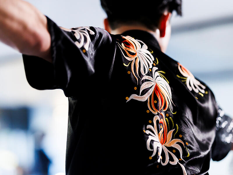 「太極拳」はよく耳にすると思いますが、武術太極拳は、長拳、太極拳、南拳、伝統拳の4つのカテゴリーに分かれた採点競技です。長拳の中に、徒手(素手)、槍術、刀術、剣術、棍術(棒状の武器を用いる種目)があります。カマキリ拳や猿拳、酔拳といったいわゆるカンフー映画に登場する型は伝統拳で、武術太極拳の一つです。早朝の公園で見かけるゆったりと行う太極拳とは別物で、競技としての武術太極拳は、スピードと力強さ、しなやかさが共存する本格的なスポーツです。