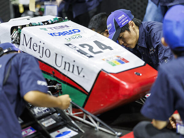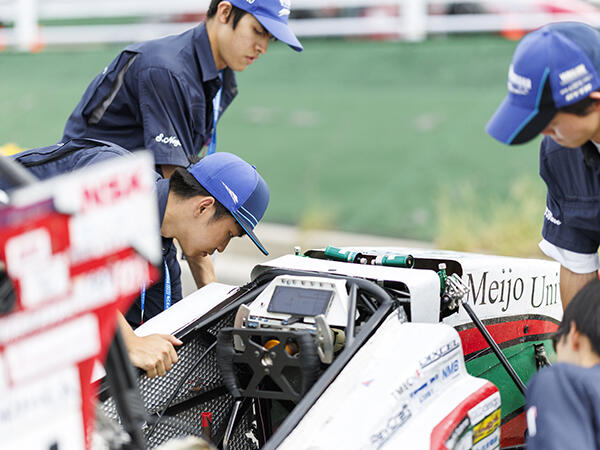 さらに、製作過程において、大手自動車メーカーの技術者が大学に出向いて溶接を指導するなど、産学連携によるメリットも大きく、プロの技を身につけるチャンスがありがたいと、ほとんどのメンバーが語っています。またソフト面だけでなく、数多くのスポンサー企業から資金や物品の支援を受けており、これらの支援によって活動が成り立っています。「企業との距離が近いだけに、学生フォーミュラ大会でも、単に記録や点数が公表されるだけでなく、細かな部分に至るまでプロの目線からフィードバックしてもらえる点も次への成長の糧になっています」と片倉さん。