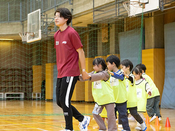 農学部の香村惠介准教授指導のもと、「将来、子どもと関わる仕事に就きたい」「子どもの運動に興味がある」といった学生が集まり、地域や企業と協力しながら、幼児・小学生を対象に運動あそびの場をつくっています。活動を通して、子どもの健やかな成長を支えるとともに、学生自身が「伝える力」や「社会と関わる力」を育み、地域全体で子どもを支える社会の実現を目指しています。