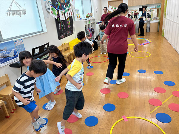 2025年12月には名城大学の教職員の子どもを対象に「名城にこにこ運動あそび」を開催しました。学生が企画・運営の中心となり、遊びを通して子どもたちと直接関わる機会を設けたことで、学内では子どもたちだけでなく保護者同士の新たな交流も生まれました。