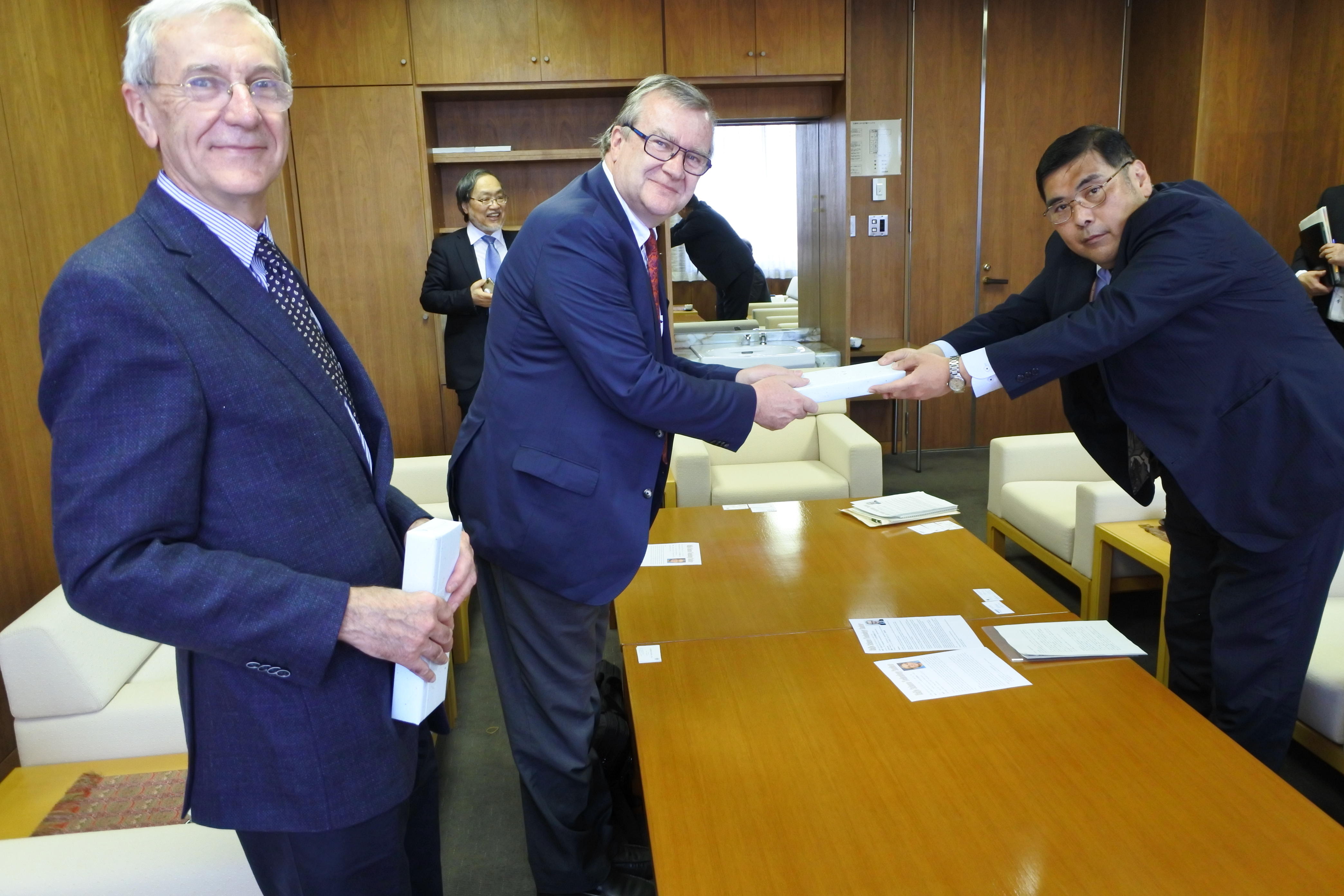 セミナーに先立って、ムーラ教授とオゴジャウェック教授は小原章裕学長を訪問しました。